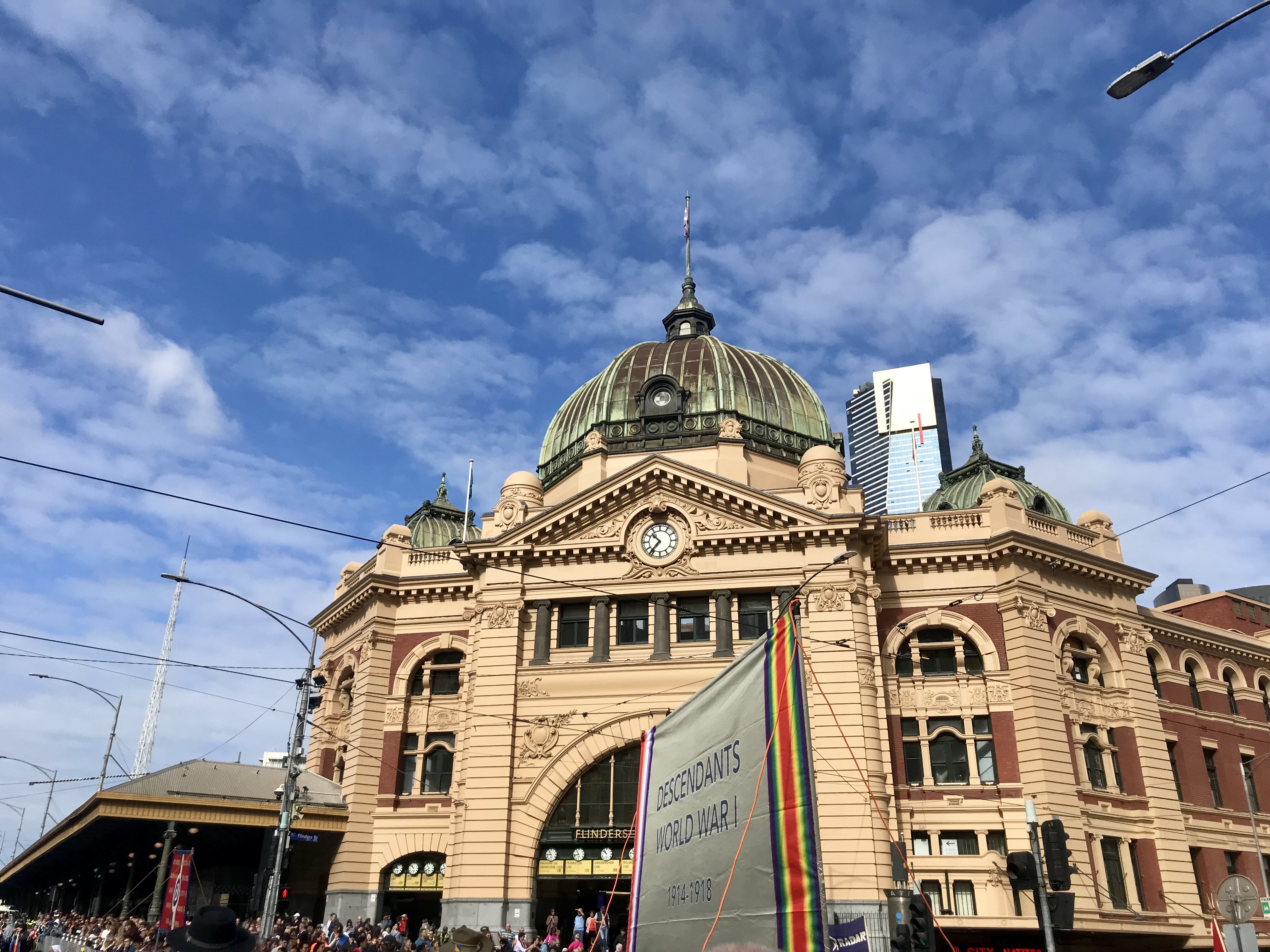 We were lucky enough to find ourselves in Melbourne for Anzac Day; a national day of remembrance that commemorates all Australians and New Zealanders who served and died in war and conflict. We watched the Anzac parade from one of Melbourne’s most famous and architecturally impressive buildings, Flinders Street Station. Veterans and their families represented their regiments as onlookers, like ourselves watched, remembered and felt gratitude for their sacrifice. This was a special moment for us as a group of friends representing Britain, the U.S and Spain, to share together and to share with the Australians amongst us.